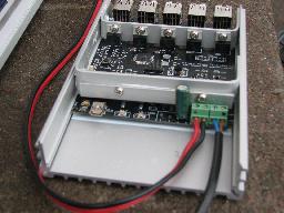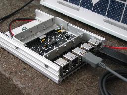 Designed to meet the needs for a small self-contained unit for bulk charging mobile phones, music-players etc. The station uses a solar panel (or small wind turbine) to charge battery to magazine energy so charging can be done on rainy, cloudy days or during night time. The station uses USB as unified power interface. USB is a popular common interface for most devices and telephones and many other gadgets. The station is designed for robustness. Chassis is a rugged aluminum case that also serves as heat sink for the power electronics. The design is based on the latest microprocessors technology. and uses powerful components, including high power FET's transistors for power control and versatile Hall elements for current sensing. The unit can be monitored, debugged and configured via USB. This needs a special cable and terminal program on the host computer. This is only intended for service and expert users. For normal operation the unit works out-of-the-box in an optimal way.
